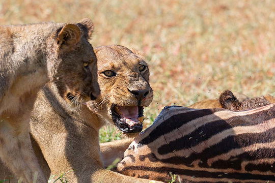 With three nights at the lodge we had 5 drives in total (we missed the first afternoon drive as we were bushed on arrival from the journey). Our field guide SK was top class, with exceptional spotting abilities. We also hit it on a good run, with some incredible sightings. Our second day in particular was very good, starting with a Leopard kill at dawn (we just missed it, but the dust was still hanging in the air), followed bu Brown Hyena and Honey Badger, and then 9 Lions on a fresh Zebra kill. And that was just for the morning! In the afternoon we saw a Pel's Fishing Owl and. just after sunset, another Leopard, this time with a Kudu calf kill up in a tree 9and we were visited by a Brown Hyena while watching him). With two Leopard kills in the area our sightings were 'locked in', and we saw both Leopards twice each. Other highlights included a massive herd of Eland, plenty of Zebra, Wildebeest, Elephants etc. But each visit is different, and this time we missed Cheetah and Bat-eared Fox, which were highlights of the previous visit.